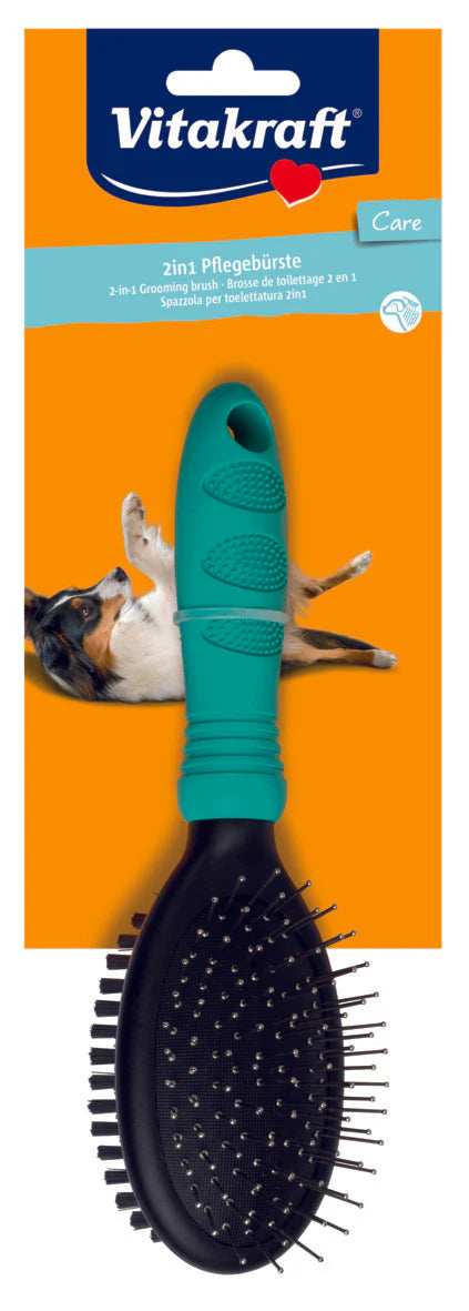 La brosse plastic double Vitakraft est un accessoire pratique pour l’entretien régulier du pelage de votre chien. Grâce à sa double face, elle permet d’adapter le brossage selon les besoins : démêlage, retrait des poils morts et entretien général du poil.